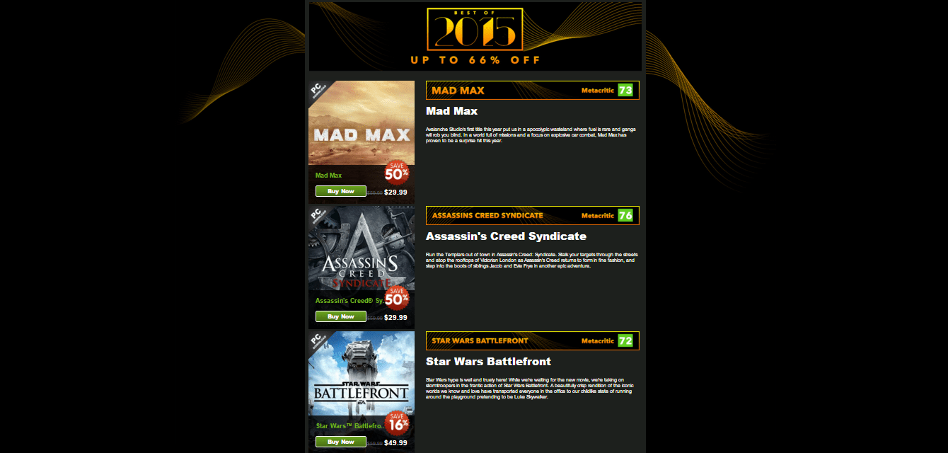 Head over to GreenMan Gaming right now! Greenman is doing their “Best of 2015” and Holiday Sales currently where PC gamers can get some of the hottest titles for the hottest prices of the year. So lets take a look at what is currently going down over there.